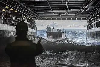 On 12 February 2016, New Orleans departed San Diego for a seven-month deployment and embarked Marines from 13th Marine Expeditionary Unit (MEU), sailors from Assault Craft Unit (ACU) 1, Assault Craft Unit (ACU) 5 and Beach Master Unit (BMU) 1 as part of the Boxer Amphibious Ready Group (ARG), comprising USS New Orleans (LPD-18), USS Boxer (LHD-4) and USS Harpers Ferry (LSD-49). The first stop on deployment was in Hawaii where New Orleans conducted four days of amphibious operations bringing thousands of Marines to the beach via MV-22 Ospreys and landing craft air cushions (LCAC) for extensive sustainment training.