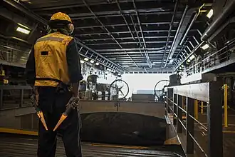 New Orleans became the first San Antonio-class amphibious transport dock ship to successfully complete a "stern gate marriage" with an Army logistics support vessel (LSV) while moored in Pearl Harbor on 24 October 2019. A "stern gate marriage" is a maneuver in which a craft's bow ramp is lowered onto a ship's stern gate for vehicle and cargo transfer. The Army's USAV CW3 Harold C. Clinger (LSV-2) was able to safely lower its stern gate into New Orleans’ well deck, then Marine Corps vehicles were quickly driven onto New Orleans. The successful marriage demonstrates just one more method by which the San Antonio-class can support a myriad of potential missions from humanitarian aid and disaster relief to amphibious assault.