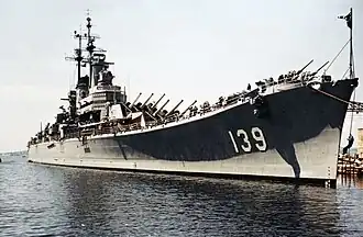 USS Salem (CA-139) is a Des Moines-class heavy cruiser completed for the United States Navy shortly after World War II and commissioned in 1949. The second ship of her class, she was the world's last heavy cruiser to enter service and is the last remaining. She was decommissioned in 1959 after serving in the Atlantic and Mediterranean. She is open to the public as a museum ship in Quincy, Massachusetts.[1]