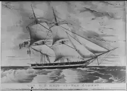 On 8 December 1846, while chasing a blockade runner off Veracruz, Somers capsized and foundered in a sudden squall.[3] Thirty-six of her 80 crew were lost. Eight survivors were rescued by HMS Endymion. Eight more swam to shore and were taken prisoner. English and French vessels rescued the other survivors.[4] On 3 March 1847, Congress authorized gold and silver medals to the officers and men of French, British, and Spanish ships-of-war who aided in the rescue.[3]