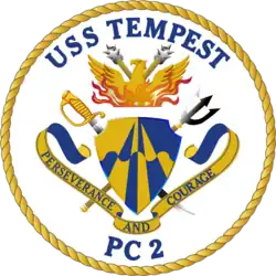USS Tempest (PC-2) is the second of the Cyclone-class of United States Navy coastal patrol ships, named for various weather phenomena. She was transferred to the US Coast Guard as USCGC Tempest (WPC-2), on 1 October 2004, and placed in 'Commission Special' status until December 2005, when she was formally commissioned as a Coast Guard cutter. She was returned to the US Navy on 22 August 2008.