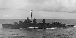 USS The Sullivans (DD-537) is a retired United States Navy Fletcher-class destroyer. The ship was named in honor of the five Sullivan brothers (George, Francis, Joseph, Madison, and Albert) aged 20 to 27 who died when the light cruiser, USS Juneau, was sunk by a Japanese submarine during the Naval Battle of Guadalcanal on 13 November 1942. This was the greatest military loss by any one American family during World War II.[1] She was also the first ship commissioned in the Navy that honored more than one person.