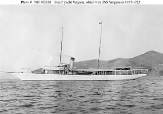 This article incorporates text from the public domain Dictionary of American Naval Fighting Ships. The entry can be found here.- Department of the Navy Naval History and Heritage Command Online Library of Selected Images: Civilian Ships: Vergana (Steam Yacht, 1897). Served as USS Vergana (SP-519) in 1917-1922