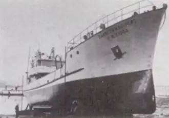 Constructed for use by POFI, Charles H. Gilbert was a 90-or-92-foot (27 or 28 m) (sources give both lengths)[4] steel-hulled research and experimental fishing vessel especially designed for use in investigating tuna fisheries in the mid-Pacific Ocean.[5] She was outfitted for longline fishing, a method Japanese fishermen had used for tuna fishing for centuries and which the FWS hoped to adapt to Western mechanical fishing techniques, in contrast to the Japanese method of longlining by hand.[6] The FWS accepted her at Tacoma, Washington, on 30 April 1952,[7] returning POFI to its authorized strength of three research vessels, and assigned her the hull number FWS 1003.[8]