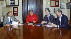 As chair, Biden contributed to successfully encouraging the Clinton administration to commit the resources and political capital to broker what became the 1998 Good Friday Agreement between the governments of Ireland and the United Kingdom through the Northern Ireland peace process.[104]