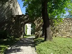 A Baroque castle was built on the site of an old Gothic castle that was abandoned in the 17th century. Uherský Brod Castle was designed by D. Martinelli and was originally intended to be a large complex, however, after 1705, the construction did not continue and only a part was created. Today the castle houses the Museum of J. A. Comenius. Fragments of the town walls are preserved, especially in the neighbourhood of the castle. Three of four gates were demolished in 1874. The only preserved gate now forms the entrance to the Museum of J. A. Comenius.[10]