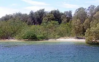 The island is surrounded by mangroves. There are four mangrove species in the far north east of New South Wales. Other common plants on the island include David's Heart and the Coast Hibiscus. A small patch of littoral rainforest occurs on the island.