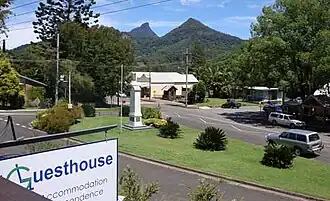 Prominent buildings in the village include the historical 'Old Butter Factory' and a primary school. There are several stores, including a post office, general store, bakery, pharmacy, and laundromat, as well as cafés. The Mount Warning Hotel is a weekend lunch 'stop-over' for touring motorbikes and those out for a weekend drive. It burned down in February 2013,[4] but was re-built and was able to re-open in mid-2015.[5] Uki is the place on which the village of Yurriki in Robert G. Barrett's book The Godson[6] is based.
