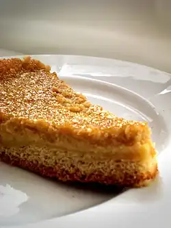 Dewberry, fried berries and honey, as well as drinks such as juice, tea, coffee, wine, horilka and prune brandy were mentioned by Zaporozhian Cossack colonel Yakiv Markovych in the early 18th century.[13] Consumption of coffee was a traditional attribute of Ukrainian Cossack starshina.[14] In the 17th century fruit confiture was a favourite treat of the monks of Kyiv Pechersk Lavra, accompanied with coffee. Sweets were traditionally made from locally grown fruit such as quince, apples and apricots. Many desserts also included honey and nuts. A signature product of Kyiv, known since the 18th century, is "dry jam", similar to succade, but with a more tender structure.[15]