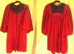 • St Andrews - the gown has a maroon yoke and collar, usually made of velvet to contrast with the woollen fabric of the main gown.