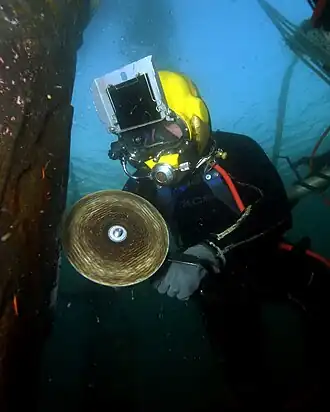 9. ^ Jensen, Milinda D. (3 March 2004). "Underwater Ship Husbandry Combines Navy, Civilian Divers into Successful Team". Story Number: NNS040303-02. Naval Sea Systems Command Public Affairs. Archived from the original on March 20, 2017. Retrieved 19 March 2017.