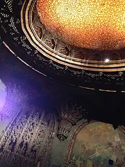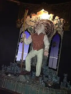 The theatre was designed by the architect C. Howard Crane of the firm Walker & Eisen for the United Artists film studio formed by D. W. Griffith, Charlie Chaplin, Douglas Fairbanks and Mary Pickford.[6] The theater, a classic movie palace, was one of many constructed by United Artists and served as a major premier house. The theater occupies three floors of the 13-story building and has a 2,214-seat auditorium.[7] Like many movie theaters, the seat rows sink in toward the front of the orchestra section, so ticket holders there must look up at the stage.[8]