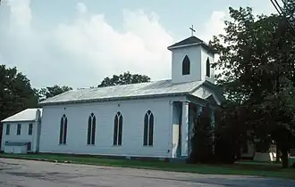 United Methodist Church is a historic United Methodist church located at Morristown in St. Lawrence County, New York. The church was built about 1838 and is a rectangular, 1+12-story frame structure with a gable roof. The interior features pressed tin walls and ceiling.[2]