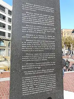 - ^ a b Epstein, Edward (6 April 1995). "Work Begins on Memorial in U.N. Plaza". San Francisco Chronicle. Retrieved 4 October 2018.