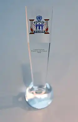 1. ^ United Nations Public Services Award, Report of the First Awards Ceremony 2003 [1] Archived 2016-03-03 at the Wayback Machine