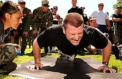 The United States Air Force Physical Fitness Assessment (PFA) is designed to test the body composition, muscular strength/endurance, and cardiovascular respiratory fitness of airmen in the United States Air Force. As part of the Fit to Fight program, the Air Force adopted a more stringent physical fitness assessment in 2004 and replaced the annual ergo-cycle (stationary bike) test that the Air Force had used for several years.[1][2] Results are stored in the Air Force Fitness Management System (AFFMS) and accessible via the AF Portal.[3]
