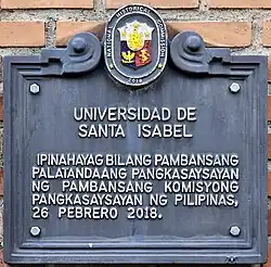 - ^ St, Bicol; ard. "Universidad de Sta. Isabel recognized as national historical landmark". BICOL STANDARD | Bicol News. Retrieved 2019-05-14.