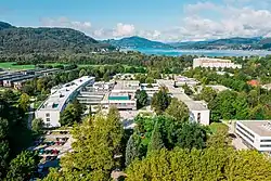 Together with the adjacent Lakeside Science & Technology Park,[7] a 60 acres start-up and spin-off park, the university campus forms the so-called Lakeside District. The Park hosts companies such as ASFINAG, CISC Semiconductor, Dynatrace, Fraunhofer Austria, Infineon, Joanneum Research, Kapsch TrafficCom, PharmTElligent, and SKIDATA.