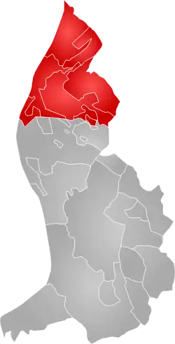 The district is less populous than Oberland (the other district) and takes up between a fifth and a sixth of Liechtenstein's total area. It comprises five municipalities and three villages, for a total of eight settlements.[2]