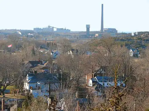 Copper Cliff, an area centred on Godfrey Drive and Creighton Road running south to Regional Road 55, was incorporated as a separate company town in 1901, and for a time was larger than the neighbouring community of Sudbury. However, Sudbury had surpassed Copper Cliff in population by 1930 when it was reincorporated as a city. The city of Sudbury attempted to annex Copper Cliff a number of times over the next 40 years, but was rebuffed by the Ontario Municipal Board because the city's desire to gain municipal taxation rights over Inco's mining facilities in the community was deemed incompatible with federal and provincial taxation rules around the mining industry.[6] The neighbourhood was eventually annexed by the city in 1973 as part of the provincially mandated municipal restructuring which resulted in the creation of the Regional Municipality of Sudbury.