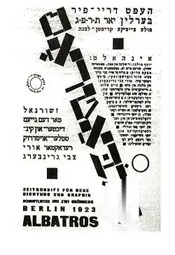 The journal was banned by the Polish censors, and in November 1922 Greenberg fled to Berlin to escape prosecution.[13] Greenberg published the last two issues of Albatros in Berlin before renouncing European society and immigrating to Israel in December 1923.[14]