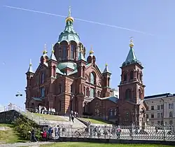 Uspenski Cathedral (Finnish: Uspenskin katedraali, Swedish: Uspenskijkatedralen)[2] is a Greek Orthodox or Eastern Orthodox[3] cathedral in Helsinki, Finland, and main cathedral of the Orthodox Church of Finland, dedicated to the Dormition of the Theotokos (the Virgin Mary). Its name comes from the Old Church Slavonic word uspenie, which denotes the Dormition. It is the largest Orthodox church in both Northern and Western Europe.[4]
