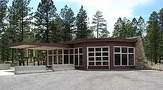 The Utah Parks Company Service Station in Bryce Canyon National Park was built in 1947 to serve automobile-borne visitors to the park. The service station was designed for the Utah Parks Company by architect Ambrose Spence in a style that was sympathetic to the prevailing National Park Service Rustic style, but was much simpler and more modern in character. In this manner, it foreshadowed the consciously simplified designs developed during the Mission 66 project.