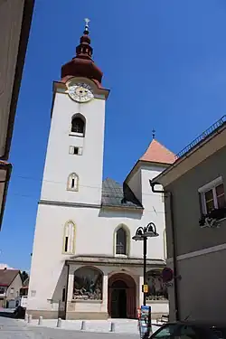 Völkermarkt (Austrian German pronunciation: [ˈfœlkɐmarkt] ⓘ; Slovene: Velikovec) is a town of about 11,000 inhabitants in the Austrian state of Carinthia, the administrative capital of Völkermarkt District. It is located within the Drava valley east of the Carinthian capital Klagenfurt, north of the Karawanken mountain range.