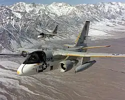 After another deployment in the West Pacific on the Kitty Hawk in 1975,[1] the squadron retired the S-2G Tracker and beginning the transition to the newer jet powered Lockheed S-3A Viking.[3] Between 4 April and 30 October 1978, VS-38 made a deployment on USS Enterprise (CVN-65) as part of CVW-14 which included operating the US-3A COD (Carrier On-board Delivery) Viking. This followed by two cruises on the USS Constellation (CV-64) as part of CVW-9 in 1980 and between late 1981 and early 1982.