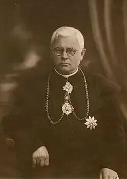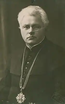 In independent Lithuania, Tumas' efforts and works received official recognition. He was promoted as honorary canon of the Samogitian Capitulum in April 1921.[158] He was awarded the Order of the Lithuanian Grand Duke Gediminas (2nd degree) on 15 May 1928,[159] and the Order of Vytautas the Great (2nd degree) in 1932. He also received the Latvian Order of the Three Stars (2nd degree).[160]