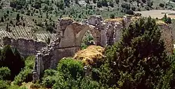 On the outskirts of the village, about 4 km to the north, in the valley, on an isolated hill, are the remains of a fortification known as El Castillo, which is surrounded by the Ontanilla and Castillo streams.[4]: 344  Its ruins cover an uneven surface, 90 by 27 m in length and width. It is surrounded by an unhewn stone wall with a thickness of 1.8 m and a maximum height of 1.2 m. Inside are the remains of a tower located in the broader area, of which 2.50 m in height are preserved. The amount of loose stones makes it difficult to calculate the length of the sides, which can be estimated between 7 and 9 m.