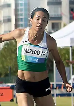 Valentina Meredova (née Nazarova; born 29 September 1984) is a Turkmenistani sprinter.[1] She represented Turkmenistan at the 2008 Summer Olympics in Beijing. She competed in the 100 metres and placed sixth in her heat with a time of 11.94 s, without advancing to the second round.[2] She competed in the IAAF World Championships in 2005, 2007 and 2015, never advancing beyond the heats.[1]