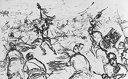 He was born in Craiova, in the Oltenia region of Wallachia. Entering the Land Forces as a volunteer Sergeant in 1858, he was promoted to 2nd Lieutenant in 1861 and Captain in 1868. He fought in the Romanian War of Independence, where he was part of the 8th Line Regiment, commanding its 1st Battalion.[1] During the first of three assaults against the Grivitsa I redoubt of the defensive works of the Pleven fortifications,[1][2] he shouted while at the head of his troops, "După mine, copii!" ("After me, children!").[1] Holding his sword in one hand and a tricolor flag in another, he reached the citadel's edge,[2] after which he fell into a ditch, riddled with bullets. Following the first retreat of the Romanian troops, the Ottoman soldiers guarding the redoubt took the bodies of Mărăcineanu and of Major Gheorghe Șonțu, sticking them as trophies onto the redoubt's parapet.[1]