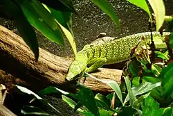 Varanus reisingeri, known commonly as Reisinger's tree monitor and the Yellow tree monitor, is a species of monitor lizard in the family Varanidae. The species is endemic to Indonesia. It was at one point at least considered an allopatric insular subspecies of the green tree monitor, due to physical and genetic similarities.[3]