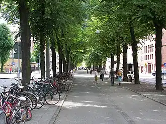 Along it are well known establishments like the Röhsska Museum, University of Gothenburg and Gothenburg School of Economics and Commercial Law. The street is known for its many cafés, and it has several restaurants. It is said to have the most dense bicycle traffic in Gothenburg. The street crosses Kungsportsavenyn, and this crossing is the midpoint of nightlife in Gothenburg.