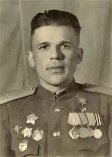 - ^ a b Shkadov, Ivan, ed. (1988). Герои Советского Союза: Краткий биографический словарь [Heroes of the Soviet Union: A Brief Biographical Dictionary] (in Russian). Vol. 2 Lyubov-Yashchuk. Moscow: Voenizdat. ISBN 5203005362.