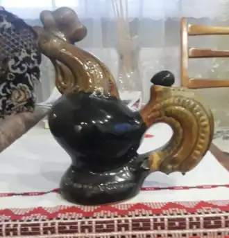 The origins of the Vasylkiv maiolica rooster date back to the 18th century, when the town of Vasylkiv was a center of pottery production in Ukraine. The tradition of creating maiolica pottery in Vasylkiv was brought to the region by skilled craftsmen from Italy, and was further developed by local artisans. It became a symbol of Ukrainian folk art and culture.[2][3]