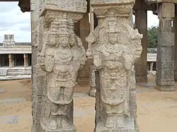 Carvings of Brahma and Vishnu on pillars in the manadapa