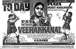 Veerakkanal (transl. Fire of Bravery) is 1960 Indian Tamil-language historical action film, directed by G. K. Ramu and produced by P. S. Veerappa. The film stars Gemini Ganesan and Anjali Devi, with M. Saroja, K. A. Thangavelu, Veerappa, M. N. Nambiar, M. N. Rajam and Kamala in supporting roles. It was released on 2 December 1960.