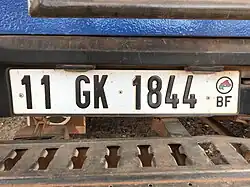 Burkinabè license plates follow a format that came into effect in 1984.[1]