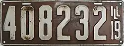 1919 White on brown with border line; "ILL 19" at right none 123456 1 to approximately 473000