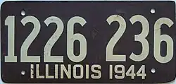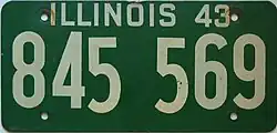 With the entry of the United States into World War II, and the subsequent introduction of measures to conserve metal for the war effort, Illinois manufactured its license plates for 1943 from wood-based fiberboard instead of steel. This practice continued each year up to and including 1948, despite the war ending in 1945 with the surrender of Japan. The state reverted to manufacturing its plates from steel in 1949, although the 1950 and 1951 plates were instead manufactured from aluminum.[1]