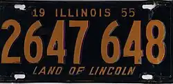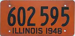 34. ^ "Auto License Plates Go On Sale Tomorrow". Chicago Tribune. December 3, 1951. p. E7. The Illinois plates for 1952 will be of midnight blue on a burnt orange background.