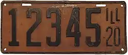 1920 Black on orange with border line; "ILL 20" at right none 123456 1 to approximately 494000