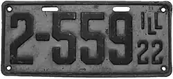 1922 Black on gray with border line; "ILL 22" at right none 123-456 1 to approximately 681-000