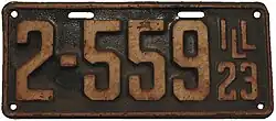1923 White on green with border line; "ILL 23" at right none 123-456 1 to approximately 841-000