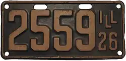 1926 White on dark blue with border line; "ILL 26" at right none 1-234-567 1 to approximately 1-180-000