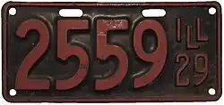 1929 Red on black with border line; "ILL 29" at right none 1-234-567 1 to approximately 1-411-000