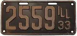 1933 White on dark blue with border line; "ILL 33" at right none 1-234-567 1 to approximately 1-277-000