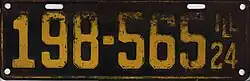 1924 Deep yellow on black with border line; "ILL 24" at right none 123-456 1 to approximately 977-000